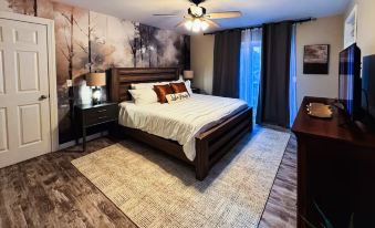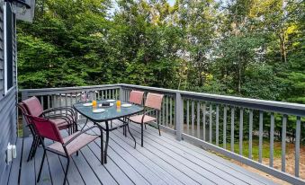 Private Master Suite: Relax in your own oasis with a king-sized bed, ensuite bathroom, and private deck with woods view.