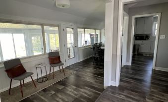 Completely remodeled interior with 4 bedrooms. Each bedroom has a queen bed - 3 bedrooms have lake views. Added "extra" 5th bedroom on first floor has a day bed with trundle that sleeps 2 more on twin mattresses. Large dining room table for family or friends to gather or eat outside by the water. Private water front living is all yours.About pets:No pets allowed, service animals permitted.About checkOut:Check out before 11:00 AM.About children:Children allowed: ages 0-17.About checkIn:Check in after 3:00 PM.About smoking:Smoking is not permitted.About minBookingAge:Minimum age to rent: 24.About events:No events allowed.