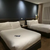 Отличный отель в целом. Комната была очень просторная и удобная. В отеле были все необходимые удобства, и большинство сотрудников были очень дружелюбны и полезны, за исключением одной женщины. Расположение немного далековато, но для нас это не было большой проблемой. Я бы вернулся сюда снова на неопределенный срок