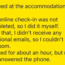 «Вы должны связаться с владельцем накануне, чтобы зарегистрироваться и получить ключ от здания и номер ключа от номера. Если у вас его нет, вы не сможете войти в здание в этот день». Пожалуйста, напишите это большими буквами.