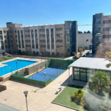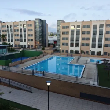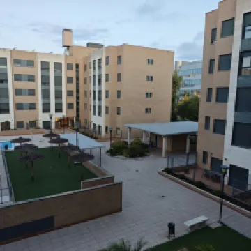 Отель находится в 10 минутах ходьбы от аэропорта, в промышленной зоне с отелями, но при этом очень тихо. Это апарт-отель с большим количеством номеров. В каждом номере есть гостиная, чисто, а напор воды в душе хороший. Цена вполне разумная для Мадрида. В апартаментах останавливается много студенческих групп, поэтому во время завтрака может быть многолюдно. Завтрак включает всё необходимое и стоит очень недорого.
