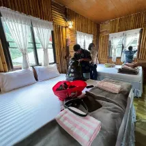 Он расположен в 5 минутах ходьбы от деревни, посреди леса и реки. Администрация очень уважительная. Обеспечивает психологический комфорт во время сна и ночью на балконе. В стоимость проживания входит лёд в термосе за 10 бат, а также напитки и еда по желанию. Приятно сменить обстановку.
