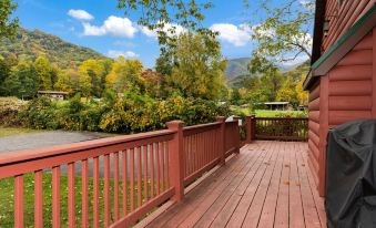 Beautiful neighborhood with friendly neighbors! Elk close-by! Great location to enjoy Maggie Valley, Cherokee and Lake Junalaska. Publix about 15 min away. Great wrap-around porch to sit out and relax. Loved the mountain decor. Check-in simple! Outstanding communication with host! Surrounded by the beauty of the mountains without having to drive up steep mountains. Loved our stay and appreciated being able to bring our two small dogs!