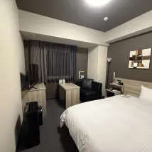 I stayed one night at Hotel Route Inn Kyoto Maizuru with a late check-in, and I’m really glad I booked it—even just for a quick transit to another city the next day. Once you step out of Nishi-Maizuru Station, you’ll see the hotel right away. The location was super convenient for me, especially since I arrived from Hokkaido via ferry at Maizuru Ferry Terminal. Everything felt new and well-maintained. The room was surprisingly spacious for a solo traveler, super clean, and the bed was very comfortable. I wish I’d stayed longer! I especially loved their onsen/public bath, which I used just before it closed at 2 AM. The breakfast was good too. If I remember correctly, there’s a nearby bar, restaurants, a Yoshinoya, and a Family Mart—so even though I arrived late, I still managed to have a proper meal.