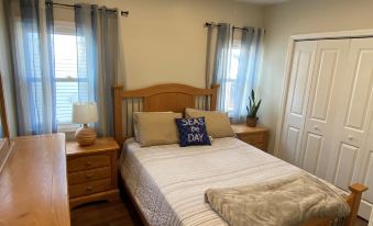 Our property was recently renovated with modern design, yet cozy lake feel, The airy open concept boasts a large kitchen peninsula with unique granite counters with 4 bar stools, large sectional sofa allows for great gathering space. Lake views from the front deck perfect for enjoying morning coffee. The back yard has a private patio and landscaping with a fire pit, perfect for enjoying summer evenings. Although lake access is not included in the stay, there is a marina 1 block away you can easily walk to for renting/ launching kayaks and boats. Browns Public Beach is less than a mile away. Many great restaurants very close by. Home has high speed internet.