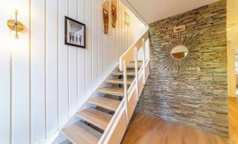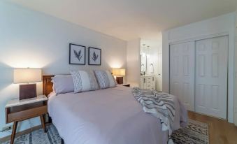 Downstairs primary bedroom has a king bed and full bathroom attached. Two other bedrooms, located downstairs, one with a queen bed and one with a full-size bunk bed and twin trundle, share a full hall bathroom. Then only bedroom upstairs has a king bed with a bathroom right next to it in the hall. Every bedroom has wall-mounted, flat screen, smart t.v.'s with streaming channels, such as Netflix, Disney-Plus, Hulu, Apple, Amazon and more!