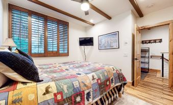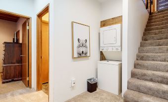 The condo features a spacious open floor plan seamlessly connecting the living room, kitchen, and dining area. The living room is furnished with comfortable seating gathered around a custom rock, wood-burning fireplace and flat screen Smart TV, WiFi and a DVD player. An extensive collection of DVD’s are provided for family entertainment. The living room has a pull out sleeper sofa for additional sleeping. Across from the living room is the dining area set with seating for 6 for everyone to gather over a home cooked meal. The fully stocked kitchen offers all you should need to prepare meals. The unit also offers a private washer / dryer giving you all the comforts of home. On the upper level of the condo, the first bedroom features a Queen bed with TV and access to the en-suite full bath with tub/shower combo. The lower level downstairs offers the additional two bedrooms and a full bath. The second bedroom offers a Queen with flat screen TV, and the third bunk room offers a Full over Queen bunk bed and TV. The full shared bath on this level has a separate vanity area and tub/shower combo. The private laundry is located on the lower level. As an added bonus you can bring Fido along as this unit does allow 1 pet and is pet friendly!