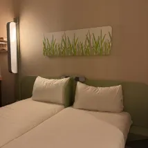 Abituati ai servizi Ibis hotel, abbiamo voluto provare anche la formula budget. Io non ci tornerei ma complessivamente non mi sento di dare un giudizio negativo, d'altro canto si paga x quello che si ha e nel dettaglio si ha una stanza con servizi essenziali, no guardaroba ma appendini, no bagno ma due piccoli vani, uno x wc ed uno x doccia, mentre il lavabo è direttamente in stanza, a vista, vicino al letto. Essenziale anche la biancheria da bagno consistente in un asciugamano a testa, (per altri asciugamani si paga supplemento). Nota dolente x la biancheria da letto a mio avviso non pulitissima. Colazione accettabile.Se cercate una sistemazione semplice e servizi essenziali, direi che è il posto giusto
