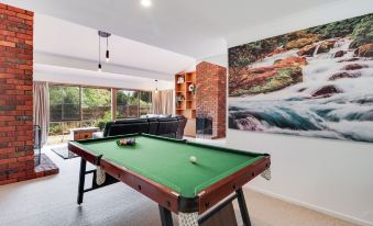 Large kitchen and dining/lounge area for entertaining the kids, with a separate lounge for the adults equip with pool table and 65” TV with PS4. Three reverse cycle split systems for heating/cooling to keep you comfortable all year round. Please note; the fire place in not functional.
