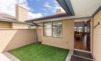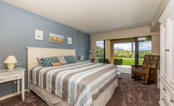 - Bedroom with King Bed, TV and access to private patio and lawn area