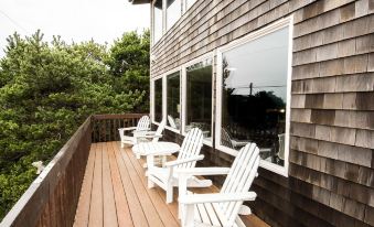 The two gathering spaces accent fun and relaxation. Main floor includes a large dining table, an open kitchen with bar, hang out space and deck! The third floor will cast a spell on you with its 180 degree views of the ocean, to watch a storm or sunset. After dark, cuddle up in front of the gas fireplace or watch a movie (HBO included) on the 60 inch flat-screen.