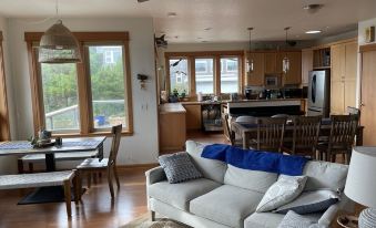 In this spacious beach house, your entire group can relax and enjoy the best of the Oregon coast—with ocean views from kitchen! Large bedrooms are well separated from kitchen/living room and guests have plenty of space to spread out and retreat. Each bedroom has a private deck and is surrounded by trees and sound of the ocean. Three out of the four bedrooms have desks for those working from home. We have great wifi.