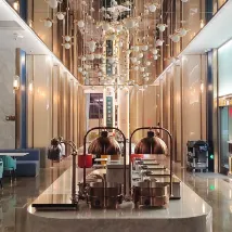 Особенности: Вечерние закуски и послеобеденный чай, тарелка с фруктами доставляется к вашей двери, а робот, который радует ваших детей, доставляет еду к двери комнаты.