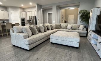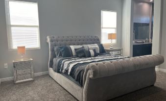 We are only five minutes away from the freeway. The annual gem show is a 20 minute ride from the property. This gorgeous brand new fully upgraded, home that was recently built in 2023 has tall, vaulted ceilings, and 10 foot doors. It is very spacious and grand with a huge concept, kitchen and a massive island. It is equipped with all state of the art appliances and a fully stocked kitchen, which opens up into the living room so you can cook and host and still be involved with all your family and friends. It has 4 bedrooms and 3 full baths. This place is great for large groups with families and kids. All bedrooms but 1 as well as the living room are all equipped with smart TVs for your favorite streaming service. Free WiFi is included. The master bathroom has a huge stone, walk-in shower. The third bedroom has two bunkbeds. Each bunkbed has a twin over full mattress accommodating to sleep up to 6 children. Our home also includes a full-size office in the den where you can set up as your own personal workspace. We also provide Samsung oversized washer and dryer . You will have full access to the enclosed automatic garage with remote. We provide everything that you will need as if this was your own home. Fully stocked with all your needs, toiletries, towels, linens, ect.