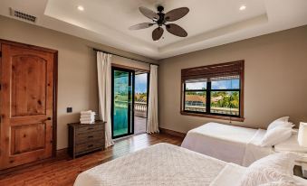 As you come up the stairs to the 2nd floor, you arrive in a 2nd great room with mini bar that opens up to a large balcony with furniture. There are 3 bedrooms, each with their own bath, off the great room so everyone has plenty of privacy and space.