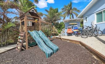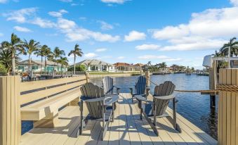 Given that we have over 190 feet of water frontage due to our exclusive cul de sac location, we have optimized the use of the space that this incredible location affords us. Just outside of the pool area, adjacent to our extra wide waterway, we have two additional seating areas, one over the water on our dock with 4 adirondack chairs, a custom made bench and the other with two adirondack chairs. Adjacent to the 2 adirondack chairs we have a very unique private mini beach area overlooking the widest part of our waterway with umbrellas and small end tables to set your drinks on. Next to the adirondack chairs we have the childrens play area. Families with children will be delighted to find a full sized Cedar playground set, with swings, slide and a fort positioned on high end rubber mulch to protect the little ones. We also built a custom sand castle building area for the little ones where our Grandchildren have spent countless happy hours making sandcastles with the provided toys.