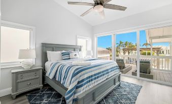 One floor up, are two additional bedrooms with king beds, 55 in Samsung smart TV's, 700 thread count sheets. Outside the two bedrooms through the new impact sliding doors is a large balcony with comfortable seating.