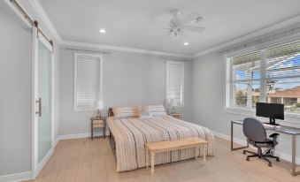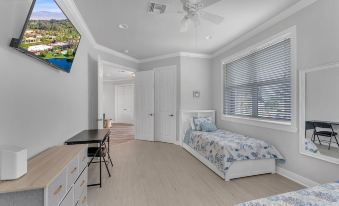The in-law apartment on the ground floor by the pool has a queen bed, remodeled full bathroom and kitchenette and is ideal for seniors, teens or just those who want to avoid the stairs to the main living area on the first floor.