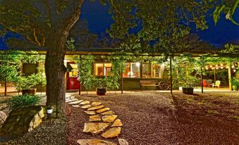 The 'Cottage' is nestled within the ranch, having its own private fenced area. You can move about the ranch along the many tree-lined trails, seeing the animals, and taking in the sights, sounds, and feel of the ranch.