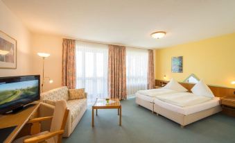 Abbiamo trascorso due notti in questa struttura. Ci siamo trovati molto bene, stanza grande, comoda, molto pulita, con un grazioso terrazzino. Tanti canali tv (solo in tedesco), niente aria condizionata, non c’è un mini frigo ma c’è un distributore di bibite fresche al secondo piano che è molto utile. Parcheggio in loco e gratuito, colazione più che dignitosa. La proprietaria, così come il personale, sono molto gentili e simpatici. Se ricapitassi in zona tornerei molto volentieri.