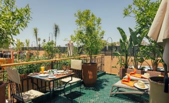 Когда вы проголодаетесь, этот риад приглашает вас в свой ресторан, где подается ужин. Тем, кому не хочется покидать свой номер, предлагается круглосуточное обслуживание номеров. Загляните в бар/лаунж и утолите жажду своим любимым напитком. Бесплатный завтрак (полный) предлагается ежедневно с 08:00 до 10:30.