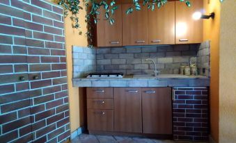 The Depandance Venera is composed of a living-kitchen area, with an internal dining table for 4 to 6 people and a kitchen equipped with cabinets, drawers, gas hob, fridge with a small freezer-crockery, pots, dishes, glasses, mocha coffee and kitchen linen.