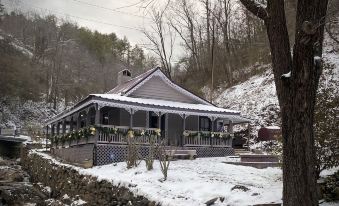 Plum Crooked Poet’s Cottage is a beautifully restored 1930s cottage nestled between a mountain and rushing creek right at the edge of town. Plum was not damaged in any way by the recent flood of downtown Marshall. Reminiscent of a European alpine village chalet, Plum boasts fairytale gingerbread trim, endless porches and charming window boxes on her country dacha inspired windows. Like an old forgotten poem, Plum’s inspirational charm is a step back in time and boasts a goosedown pillowtop king bed and a clawfoot tub. Lounge on the wrap around porch overlooking the creek as the small town pace of historic Marshall passes by. The covered back deck is nestled against the mountain with an outdoor sofa bed for nature napping. A wondrous winter destination evoking a fabled era while providing modern convenience with scrupulous attention to detail, we aim to spoil our guests!