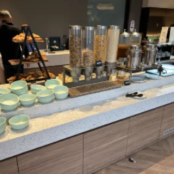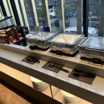 Во время завтрака одна пожилая азиатская сотрудница была просто замечательной: очень энергичной и увлечённой своей работой. А ещё был высокий официант, который постоянно следил за своевременным пополнением блюд и поддержанием чистоты в зоне выдачи еды – это было очень хорошо. Я заметила, что когда его не было на смене, еда заканчивалась, и приходилось долго ждать пополнения, а однажды кофейные чашки были грязными! Просто ужас, взяла три штуки – все грязные. После этого я стала пользоваться только одноразовыми бумажными стаканчиками! Тарелки тоже, я заметила, что на них часто были пятна, они были недостаточно чистыми. Команда по завтракам, персонал по приготовлению еды и мойке посуды ужасны. Кроме того, еда на завтрак каждый день одна и та же, но это меня не беспокоит. Важно, чтобы к началу завтрака все блюда были готовы, а посуда была чистой.