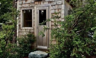 A quiet romantic waterfront home is the perfectly positioned on Pickering Passage of the Puget Sound. Famed Walkers' Landing looks across the water at Harstene Island, the view is a constant changing drama unfolding on this body of water, named after a naturalist on a Wilkes expedition. Pickering Passage flows past the mouths of Hammersley Inlet, Totten Inlet, and Eld Inlet. It is a nutrient rich area, producing oysters that grow rapidly. Come enjoy the view from the bank of Abbondanza, a property designed by artist Ray Turner, graduate of Stadium HS in Tacoma. Attending college in Washington. Oregon and California, undergraduate for four years. The next four years at Art Center College of design where he taught after graduation for many years. Enjoy the view from 34 windows and doors in the Captain's Cabin a cedar sided exterior, wrapped in pine from floor to ceiling inside. The 1950's table and chairs in the breakfast nook, boast a great view, with a fully equipped Kitchen, with retro style appliances, to compliment the beautiful barn lights, antique fixtures, and chandeliers. All the lights are on dimmers setting a romantic interior when the sun goes down. The outdoor lighting sets a mood as well as guides you to the fire pit or railing to sit under the stars and look at the sound. The bedding is all cotton, with a goose down comforter and cotton quilts. The pillows are high quality goose down. There are decks off the kitchen and master bedroom, to enjoy the sunrise, sunset and all the wonders the passage has to offer. The natural stone staircase and gravel paths will take you to the wooden railed staircase access to the beach, where you can kayak, windsurf, paddle board, fish, whatever you like to do on the water. After your water sports, or walk along the gravel beach, go up take a hot outdoor shower, soak in the claw foot tub, take a sauna, or do all three. Abbondanza is difficult to describe, it has bountiful sea life, always common to see any number of birds, including bald eagles. It is quiet, peaceful, and has an effect on you that will make you wish you could stay longer, wanting more. The sauna is a favorite building where you can enjoy a warm eucalyptus infused relaxing space. Then take a hot outdoor shower overlooking the Sound. Rock away an hour on the master deck in teak rocking chairs with your favorite evening drink. Welcome!About pets:No pets allowed.About checkOut:Check out before 11:00 AM.About children:Adults only.About checkIn:Check in after 3:00 PM.About smoking:Smoking is not permitted.About minBookingAge:Minimum age to rent: 25.About events:No events allowed.