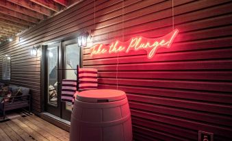 - Lower level deck with 7 person hot tub, cold plunge, cornhole, and additional seating