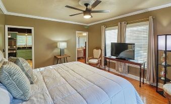 Guests will feel right at home with high speed wi-fi and televisions in each of the bedrooms, along with 70+ inch televisions in the two living areas (YoutubeTV, and Disney+/Hulu/ESPN bundle throughout the house). Central heat and air, laundry room, and game room with pool table, classic arcade games, and dart board. Read a book or enjoy company out on the expansive wrap around porch area, take a stroll out on the 2 acre grounds, play a tune on the Grand Piano, or spend your time cooking a gourmet meal in the spacious kitchen with modern appliances, including a double oven.
