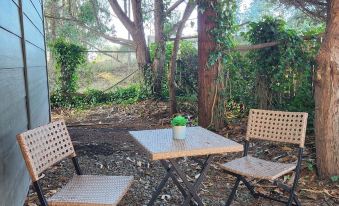 The upstairs bedroom features everything you need to relax or to get work done. Enjoy the large TV with Netflix or work from the convenient desk. Or instead just relax and unwind in comfort of your queen sized bed after a long day of exploring.... and when you're ready, step outside and sink into the comfortable hammock amidst the beautiful eucalyptus-lined drive.