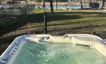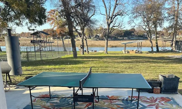 Come enjoy the river views in this 3 bedroom 2.5 bath 1100 sq. Ft two story Get- Away. Located on the biggest part of Lake McQueeney. Sit by the fire pit, make s’more’s, watch the sunset or relax in the Hot tub while you enjoy the wildlife of bird watching or the goats maintaining the grass of the lake bottom across the river. Play games in the large backyard and BBQ on the Weber charcoal grill. You can cook in the full kitchen with a dishwasher. Great Location- You can travel less than 20 minutes to Gruene, New Braunfels, Seguin, or Marion for antiquing, golf, weddings, floating the river and so much more.