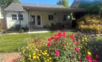 Great spot, mainly quiet with beautiful flower garden. Well equipped kitchen and appliances. Nice open space for family. Centrally located for access to Rogue Valley destinations.