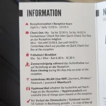 Остановитесь в этом немецком отеле и получите незабываемые впечатления! С того момента, как вы войдете в вестибюль, вас привлечет его элегантное оформление и теплая атмосфера. Номера просторные, светлые, хорошо оборудованные и ухоженные, что позволит вам чувствовать себя комфортно. Завтрак богатый и разнообразный, вкус потрясающий. В частности, обслуживающий персонал отеля дружелюбный и внимательный, благодаря чему вы почувствуете себя как дома. В целом, это было очень приятное пребывание, очень рекомендуется! "
