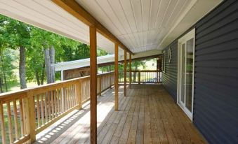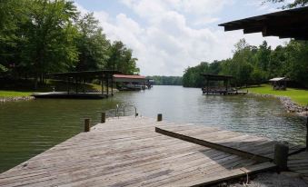 The Blue Cat Lodge is located directly on Wattsbar Lake. Featuring a private dock, a wraparound deck, and an outstanding view, we know you will enjoy staying here as much as we have. The recently renovated home has two living rooms, one full kitchen upstairs and a half kitchen/bar downstairs, two queen beds, bunk beds, and a full bed. Grill out and enjoy dinner with a lake view or take a short ride to Euchee Grill & Brewhouse. The cornhole boards and firepit are yours to enjoy!