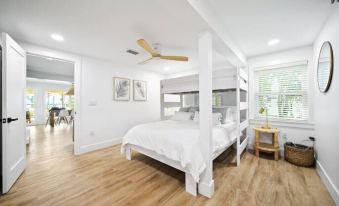 Family Friendly: The bungalow is the perfect vacation spot for your family or a group of families! Accomodations for all ages are available upon request (High chairs, strollers, car seats, toys/books, pack & plays, etc.) We are a young family of 4 (soon to be 5) so we got you covered! Additionally, the bungalow is plentiful in space & beds, sleeping 9 on beds, 3 on the couch. We will allow additional guests upon request and have blow up beds available as needed.