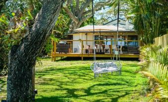 Situated on the Indian River Lagoon, which is a saltwater lagoon offering countless watersport activities, dolphin tours, fishing, bioluminescence (Summer time), or just rest & relax on your 100' long raised dock in a hammock. The Indian River Lagoon is one of the most biodiverse estuaries in the Northern Hemisphere and is home to more than 4,300 species of plants and animals. The Lagoon contains five state parks, four federal wildlife refuges and a national seashore as well as countless waterfront restaurants & bars nearby. Don't want to leave the property? No problem, our guests can enjoy (2) standup paddleboards, (3) kayaks, snorkeling gear, bocce ball, and fishing all on property. Want to just relax? Enjoy the clear sand bottom lagoon on our private sandbar just a step down from the dock.