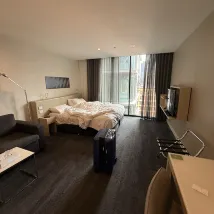 Мы приехали рано утром и смогли оставить багаж на хранение. Нас заселили раньше, когда номер был готов, и выселили позже, когда номер был свободен. Персонал на стойке регистрации был дружелюбным. Расположение очень хорошее, рядом с трамвайной и железнодорожной станциями.