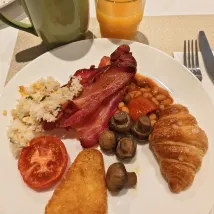 Надеюсь, завтрак будет более разнообразным. Я провёл здесь пять дней подряд, и завтрак мне немного надоел.