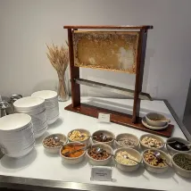 Обслуживание: Предлагались блюда китайской кухни, а персонал был очень дружелюбным и отзывчивым. Завтрак тоже был очень вкусным, а персонал — очень гостеприимным. Мёд был совершенно уникальным и свежеприготовленным 🥚.