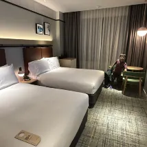 Расположение отеля очень удобное: два входа и выхода. Он окружен главной торговой улицей, которая очень оживлённая. Отель также совсем новый. Постельное белье тоже хорошее и очень мягкое.