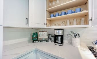 Discover the joy of effortless cooking in our fully equipped and modern kitchen. A variety of contemporary appliances, cookware, and dinnerware await your culinary endeavors. With expansive countertops and ample storage, kitchen island, preparing meals becomes a fun and enjoyable task.