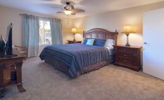 This unit is a very spacious 2 bedroom / 2 bath townhome - on 1 level and no stairs! 1 king bedroom and 1 queen bedroom. It is truly great for families and couples in a safe and quiet neighborhood looking to escape to a warmer climate and experience what the desert has to offer. It has 2 separate bedroom and bathrooms - great for 2 couples. It has a nice sized backyard for dogs, and a patio for BBQ's and relaxing in the evening. The home has lots of natural skylight lighting and this home is very spacious and comfortable. There is laundry inside - washer/dryer. The HEATED community pool and hot tub are a short walk away. The unit is well equipped with all the essentials; linens, towels, pillows, kitchen dishes and utensils, coffee maker, toaster, ironing board/iron, microwave, dishwasher, oven/stove, refrigerator, etc. Satellite and internet provided.