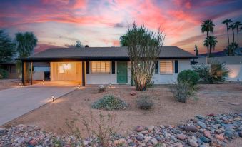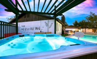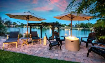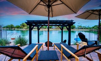 It’s a banger! Leave your cares in the dust in this brand new waterfront paradise conveniently located for all of your vacation needs. We have thought of everything, just bring your friends, family and good vibes. This exclusive two-bedroom, newly-renovated and contemporary home will have you reeling… reeling in the fish off of your private dock, reeling in the romance with your significant other, or literally reeling influencer-style as you show off your fun weekend on the ‘Gram. Our fun and family-friendly space comes equipped with custom bunk beds, a cozy main bedroom and a resort-style backyard oasis that dreams are made of. The heat may be dry at this desert retreat, but your cup will overflow when you soak in the splish-splash of amenities and activities this crib has to offer.