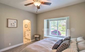 - Master Bedroom features a King bed with ensuite bathroom that has double vanities, a walk-in shower, bath tub, large walk-in closet, TV, and a private exit to the backyard.