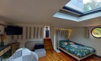 I propose you this totally independent and comfortable accommodation surrounded by nature and water at 10 mn walk from the city center. Longer stays are possible, all the equipment is present. Formerly the sailor's cabin, Pixxl has been totally renovated to welcome travelers wishing to live their stay in Metz in a different way. Nothing resembles a classic apartment but all the expected comfort is present. NOTE: In some areas, the ceilings are low and may be uncomfortable for taller children. Thank you for taking this information into account. A private walkway leads you to the original cabin. Very bright, you can have a meal there. A few steps down you will find the fully equipped kitchenette and next to it, the bathroom with bath/shower. A few more steps down, the bedroom / living room with a 140cm bed, a bench, armchair, closet, TV and Wifi. Just above, a nice wooden terrace to enjoy the view on the canal.