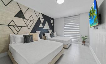 Room 5: Master Bedroom with 2 Queen size beds, access to a full private bathroom, Smart TV, 2-night stands, with access to the pool