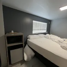 When we arrived, the check-in area was closed, so we were outside waiting, and i was trying to cancel because i thought i would have to stay somewhere else. After about 30 mins, finally someone finally showed up, said he was the only person there and was in a room fixing their AC. That should've been a red flag. It was late, and i was tired, so we checked in. We had a double bed room, and one of the beds was filthy with crumbs of some sort on the bed. The shower was either extremely too hot to shower or cold, so we took cold showers, no wash cloths were provided just hand towels and towels, and we could never get the tv to play a show, although it was connected to their wifi..smh horrible experience