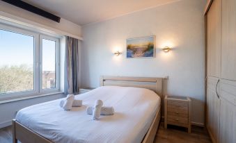 Residence "Verona", 7 storeys. Middelkerke, 400 m from the sea, 400 m from the beach. Shop 600 m, supermarket 290 m, restaurant 500 m, bakery 450 m, tram "Middelkerke De Greefplein" 350 m, bus stop "Middelkerke Markt" 450 m, railway station "Oostende Station" 9 km, sandy beach "Middelkerke" 400 m. Sports centre 2.4 km. Nearby attractions: Normandpark 600 m, Casino Middelkerke 700 m, Raversijde 3.9 km, Oostende 7.5 km, De Kegel X-Treme 2.2 km. "Verona", 4-room apartment 125 m2 on 3rd floor. Object suitable for 6 adults + 2 children. Comfortable and cosy furnishings: entrance hall with separate WC. Living/dining room with dining table, digital TV and international TV channels. 1 double bedroom with 1 double bed (160 cm, length 200 cm), hand-basin and shower. 1 double bedroom with 1 x 2 bunk beds (90 cm, length 200 cm), 1 double bed (160 cm, length 200 cm). 1 double bedroom with 1 bed (90 cm, length 200 cm), 1 double bed (160 cm, length 200 cm), hand-basin and shower. Open kitchen (oven, dishwasher, 4 ceramic glass hob hotplates, toaster, kettle, microwave, electric coffee machine). Bath/shower/WC, double hand-basin. Heating. Small balcony 1 m2. View of the sea. Facilities: baby cot, hair dryer. Internet (WiFi, free). Please note: non-smoking house. Smoke alarm, fire extinguisher. Bed layout is flexible. There are more sleeping options available than the maximum number of people allowed which may, however, not be exceeded.